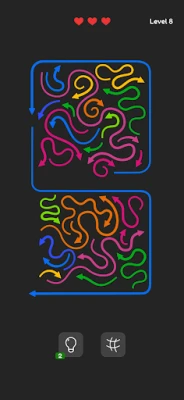 Ogni livello di Arrow Flow è un labirinto artigianale, un microcosmo di percorsi intricati e regole celate, che si svela progressivamente. Dal caos iniziale di frecce aggrovigliate, la difficoltà cresce con maestria, introducendo nuove direzioni di rotazione e arrangiamenti spaziali sempre più astuti. Questo non è solo un gioco di tap; è una vera ginnastica mentale che ti spinge a leggere il flusso nascosto, a prevedere i movimenti e a padroneggiare l'intera struttura. L'estetica minimalista, con sfondi scuri e colori vivaci, è pensata per minimizzare le distrazioni e massimizzare la concentrazione, offrendo un'esperienza visiva tanto elegante quanto funzionale.
