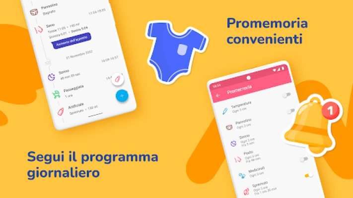 Questa soluzione intuitiva è progettata per semplificare la gestione quotidiana del tuo bambino. Monitora con precisione ogni sessione di allattamento, che sia al seno (singolo o doppio) o tramite biberon, registrando durate e quantità. Traccia facilmente l'introduzione dei cibi solidi, annotando tipo e porzioni. Per le mamme che estraggono il latte, è possibile registrare la quantità prelevata da ciascun seno, fornendo un quadro completo. Ogni cambio di pannolino può essere annotato dettagliatamente, indicando se bagnato, sporco o entrambi, e un conteggio giornaliero ti offrirà una panoramica immediata della frequenza.