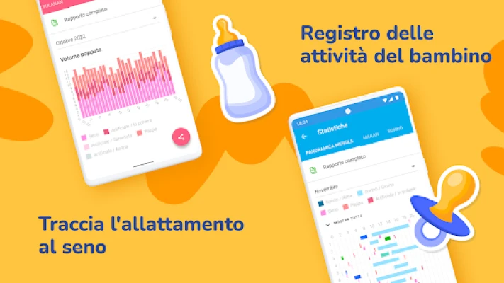 Avere a disposizione un registro dettagliato di tutte le attività del tuo piccolo non solo ti offre tranquillità, ma fornisce anche dati preziosi per le visite mediche, aiutando a garantire che il tuo bambino cresca sano e forte. È il supporto indispensabile che ti permette di goderti appieno la magia della maternità, trasformando la fatica in fiducia e organizzazione.