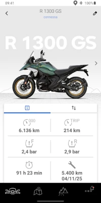 Ogni viaggio diventa un racconto dettagliato grazie alla funzionalità di registrazione, che monitora i percorsi con dati preziosi sul veicolo e analisi delle prestazioni come angolo di piega, accelerazione e numero di giri del motore. Accedi rapidamente a informazioni vitali come chilometraggio, autonomia residua, pressione degli pneumatici e la possibilità di fissare appuntamenti per l'assistenza online. Vuoi condividere le tue epiche avventure? Esporta i tuoi itinerari, pubblica foto e resoconti sui social media, ispirando la tua community. BMW Motorrad Connected App è in costante evoluzione, sempre pronta a sorprenderti con nuove funzioni. Make Life a Ride.