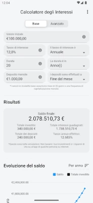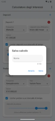 Ma la vera forza risiede nella "Modalità Avanzata", progettata per chi desidera esplorare scenari più complessi e personalizzati. Qui, hai la flessibilità di aggiungere depositi e prelievi distribuiti nel tempo, di scegliere diverse periodicità di capitalizzazione, dalla quotidianità alla cadenza trimestrale, e persino di personalizzare la durata dell'anno. Vuoi simulare un piano in cui versi consistenti somme per decenni e poi inizi a ritirare una percentuale del saldo annualmente? Questa applicazione gestisce queste complessità con estrema agilità, offrendo uno strumento di modellazione finanziaria senza pari.