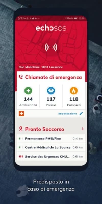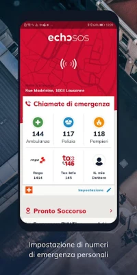 EchoSOS ti collega subito al servizio di emergenza giusto. Mostra automaticamente il numero appropriato, trasmette la tua posizione GPS e permette di condividere informazioni mediche importanti, guadagnando minuti preziosi.