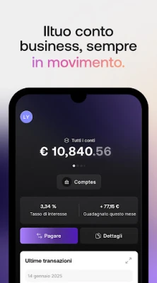 Hero — Il conto business semplifica la gestione finanziaria della tua attività. Centralizza conti, carte e flusso di cassa, gestisci fatture con facilità. Ottieni un IBAN dedicato, carte Visa Platinum e remunera il tuo saldo fino al 3%. Rendiamo la tua vita imprenditoriale più semplice.