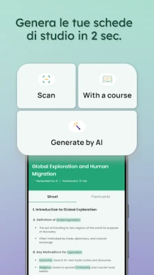 La preparazione non è mai stata così efficiente. snapSchool ti permette di creare schede riassuntive impeccabili su qualsiasi argomento: ti basta inserire il tema desiderato o scansionare i tuoi appunti per vederli trasformati in materiale di studio chiaro e organizzato. Approfondisci i concetti chiave con flashcard interattive, progettate per ottimizzare la memorizzazione a lungo termine. Grazie a questo arsenale di strumenti, dal supporto sui compiti alle schede di ripasso personalizzate, migliorerai in tutte le materie: dall'italiano al latino, dalla biologia all'economia.