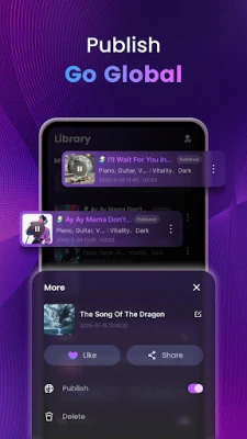 Sondo democratizza la creazione di contenuti, consentendoti di produrre MVs personalizzati non solo da tracce appena generate, ma anche da musica esistente. Basta caricare file audio o incollare link musicali, e Sondo creerà istantaneamente videoclip visivamente abbinati e coinvolgenti. Hai il pieno controllo creativo grazie a funzionalità di editing intuitivo: personalizza le scene, applica filtri ed effetti, e perfeziona lo stile visivo con una preview in tempo reale che ti permette di vedere ogni modifica all'istante. Una volta completato il tuo capolavoro, Sondo semplifica la condivisione, permettendoti di pubblicarlo istantaneamente sulle principali piattaforme social o di mostrare il tuo talento all'interno della sua vibrante comunità di creatori, monitorando l'impatto dei tuoi contenuti. Il valore aggiunto è la piena proprietà intellettuale: mantieni il 100% dei diritti su tutta la musica e i MVs realizzati con Sondo, godendo della libertà di distribuire e monetizzare le tue creazioni senza restrizioni.