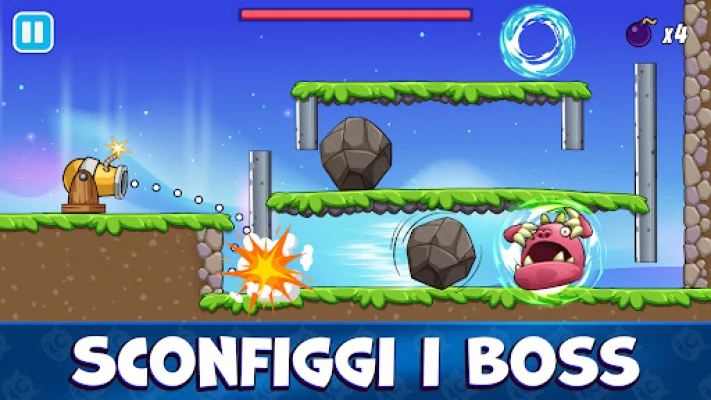 Il cuore di questa sfida si trova nei suoi enigmi ingegnosi, pensati per stimolare la tua mente in modi sempre nuovi. Per aiutarti nella tua missione, avrai accesso a un arsenale di strumenti divertenti e devastanti: posiziona trappole astute, scatena reazioni a catena con barili esplosivi e usa la sega circolare per eliminare gli ostacoli. Goditi l'emozione di una fisica impeccabile che rende ogni rimbalzo e ogni esplosione incredibilmente realistici e soddisfacenti. E quando sarai pronto per la prova definitiva, preparati ad affrontare colossali boss, nemici imponenti che richiederanno tutta la tua astuzia e abilità per essere sconfitti.
