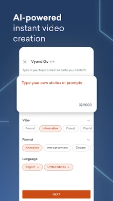 Sblocca un nuovo livello di creatività video direttamente dal tuo dispositivo mobile con la Vyond companion app. Questa applicazione all'avanguardia porta la potenza dell'intelligenza artificiale nel palmo della tua mano, permettendoti di realizzare produzioni video in stili incredibilmente diversi, dall'animazione più vivace al fotorealismo più sofisticato e tutto ciò che sta nel mezzo. È la soluzione ideale per connettere il tuo flusso di lavoro creativo, garantendo una perfetta sincronizzazione tra i video che crei sul desktop e quelli realizzati in mobilità. Accedi semplicemente con il tuo account Vyond esistente per un'esperienza utente senza interruzioni.